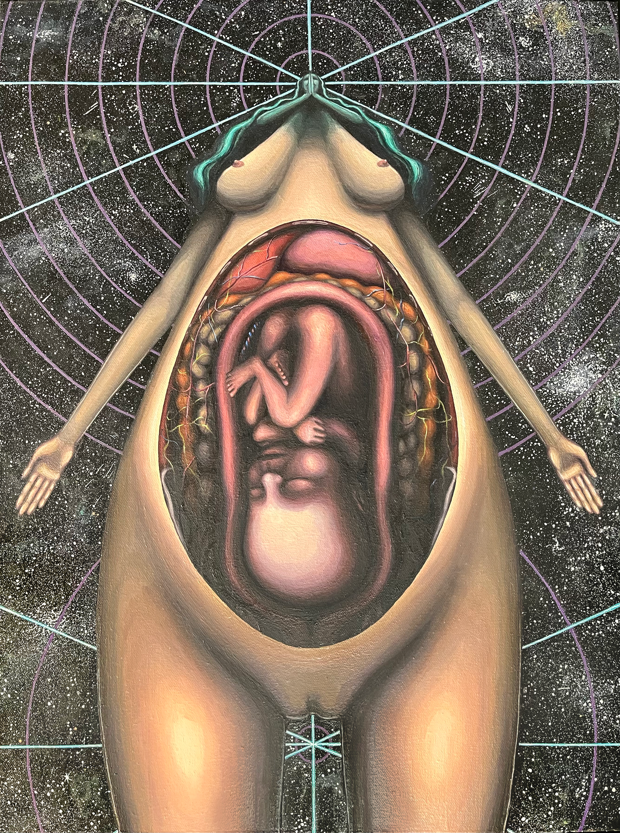 This painting is a series with “Mother’s Hope”. Another mother-goddess figure oil portrait painting of mine, based on a mushroom vision from the same time period.